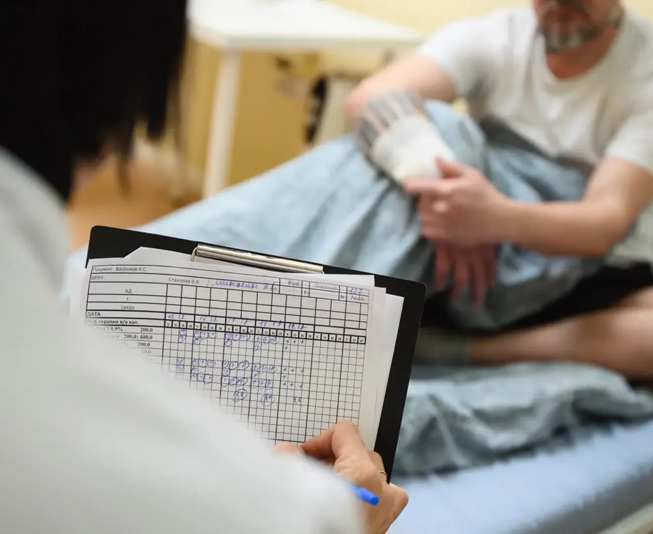 Осмотр и диагностика – врач измеряет артериальное давление, пульс, оценивает общее состояние, собирает анамнез, выявляет противопоказания и определяет степень интоксикации